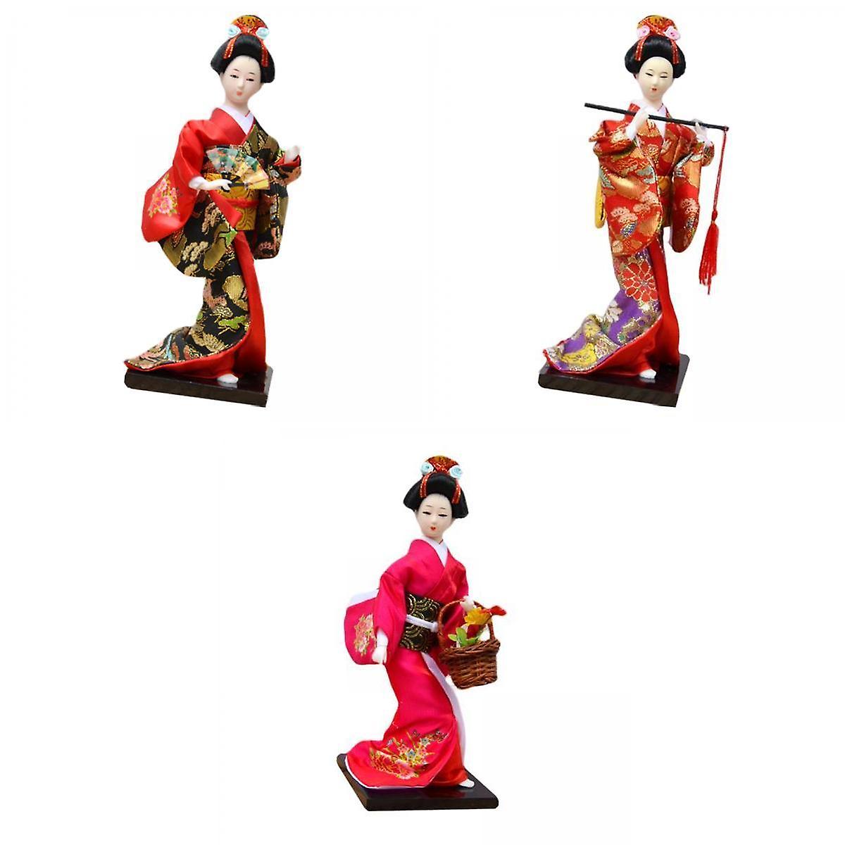 3x 11 inch Japanese Kimono Geisha Doll Office Bar Handcrafted Ornament