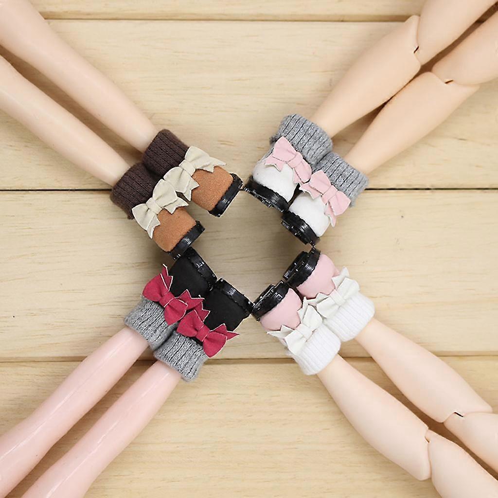3x 1/6 Scale High Boots PU Leather Shoes with Bowknot for Blythe Doll Black