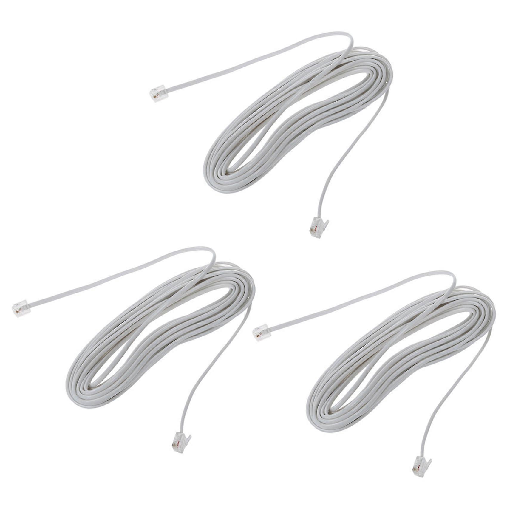 3X 9M 30Ft RJ11 6P2C Modular Telephone Phone Cables Wire White