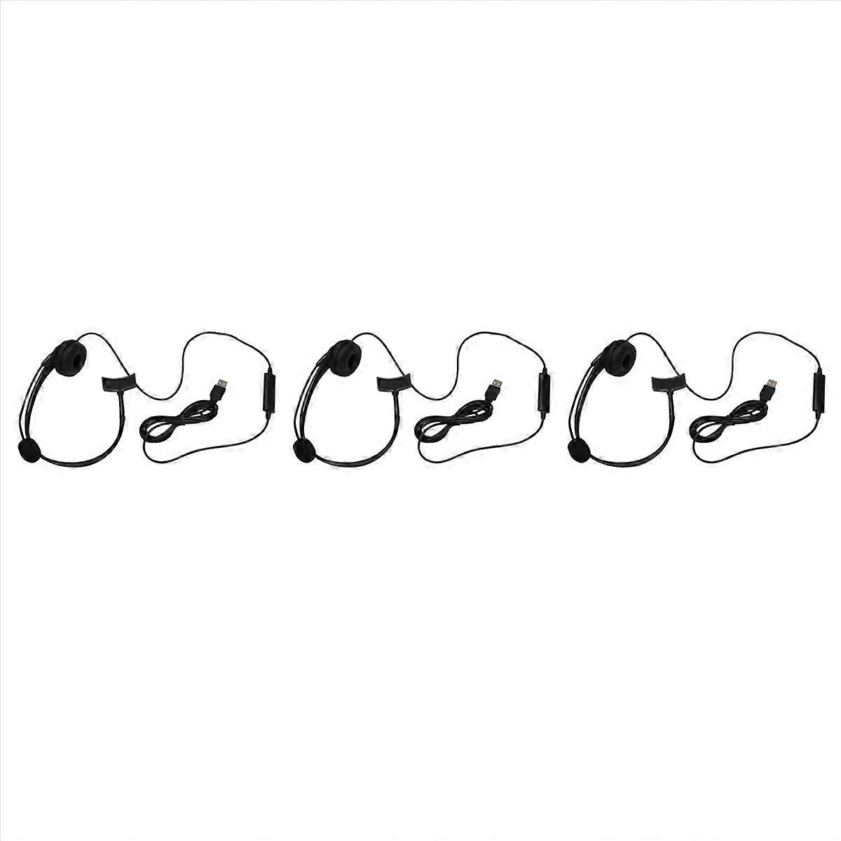 3X USB Call Center Headset with Noise Cancelling Mic Monaural Headphone for PC Home Office Phone Ser