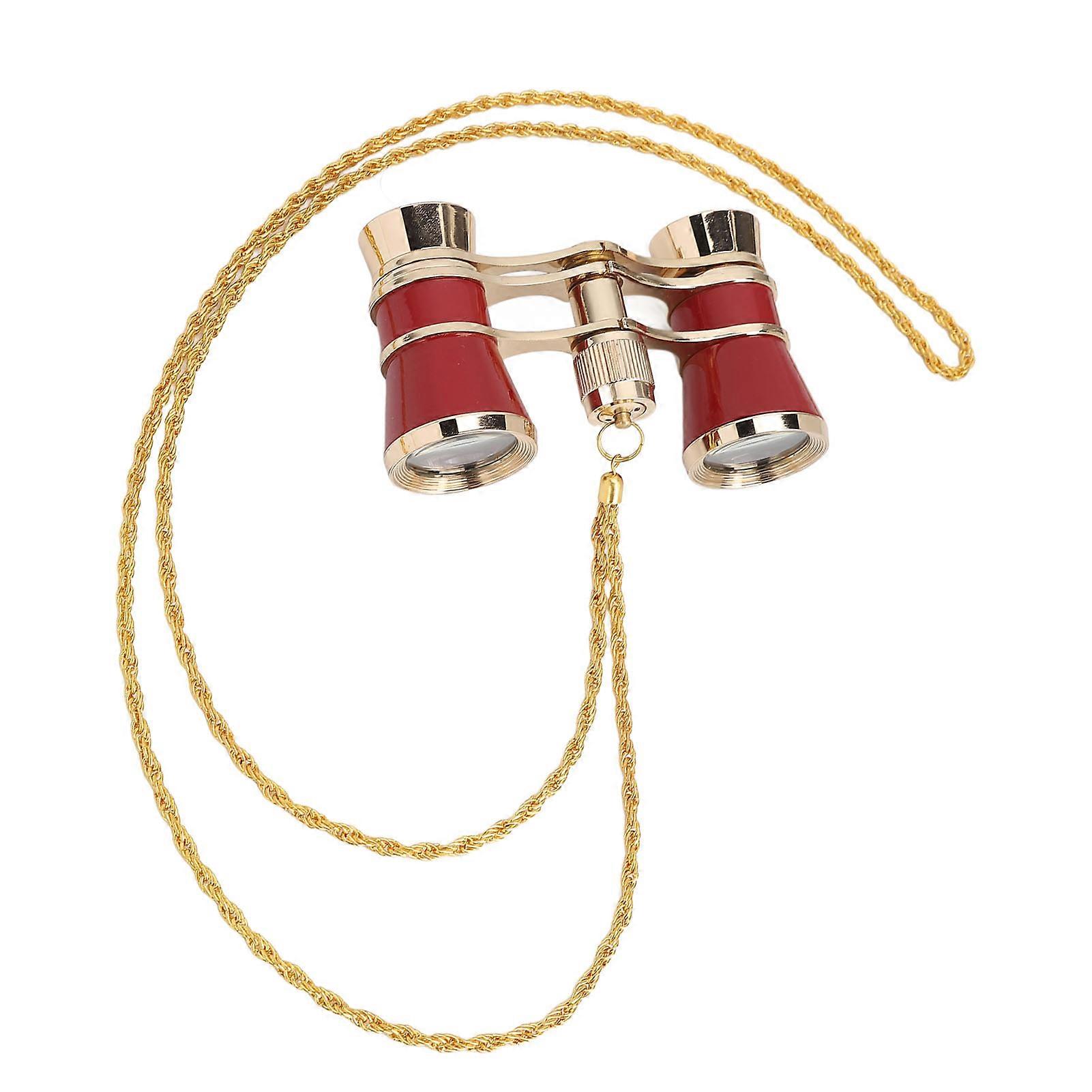 3X25 Theater Glasses Opera Binocular 3X25 Opera Glasses Binoculars with Chain for Bird Watching Outdoor Hunting Camping Vintage Red