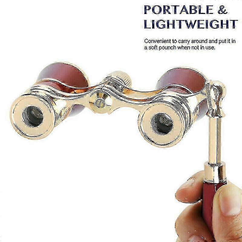3x25 Binoculars Metal Opera Theater Glasses Coated Lens Red Telescope W/ Handle f74