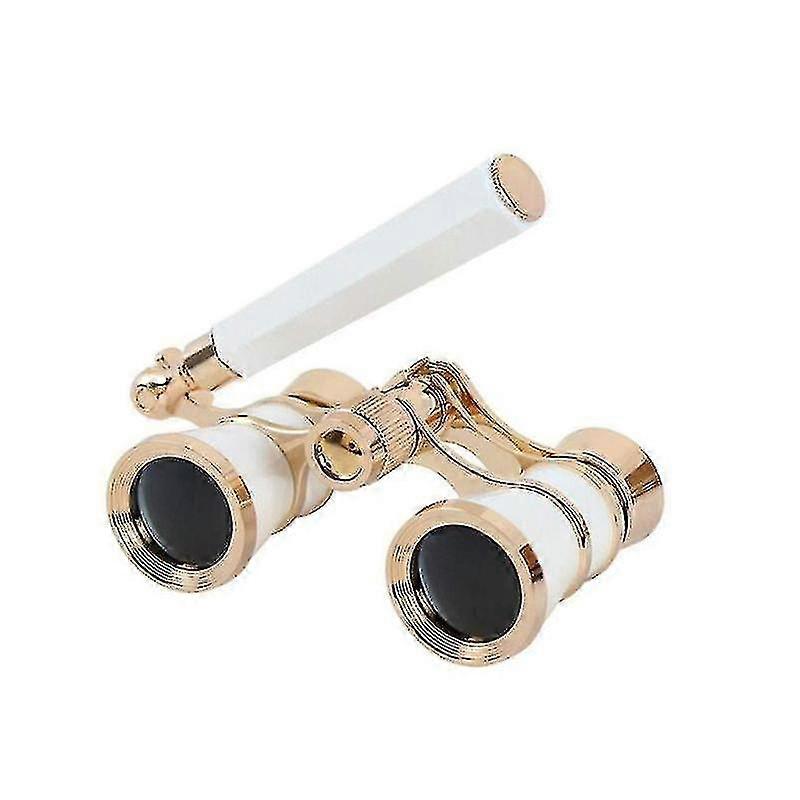 3x25 Binoculars Metal Opera Theater Glasses Coated Lens Red Telescope W/ Handle