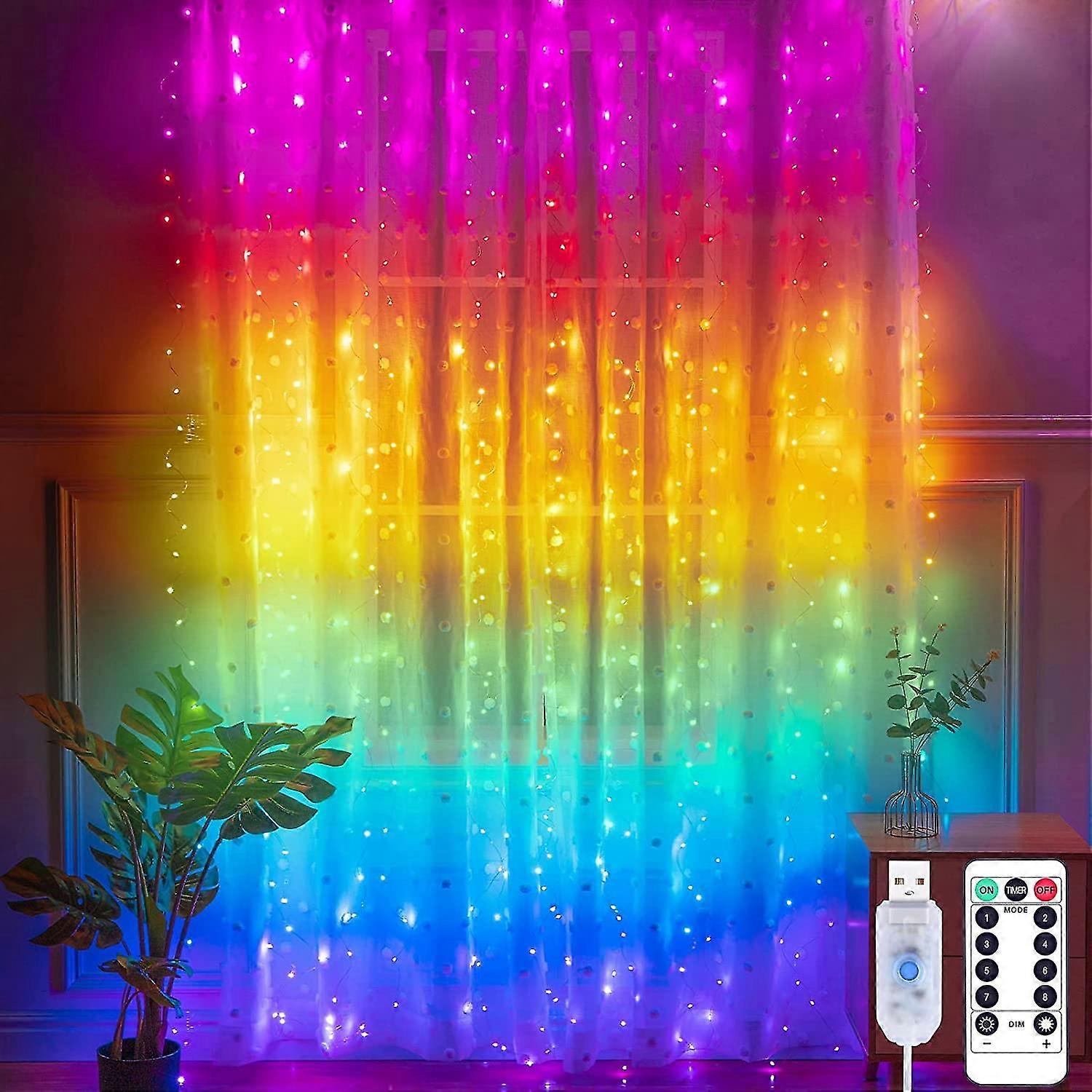3x3m LED Curtain Light 300 LEDs 8 Modes Timer Remote Control 7 Colors