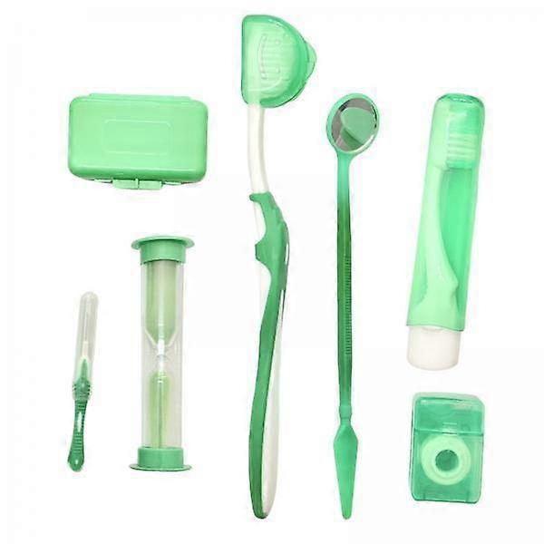 3x8 Kit Orthodontic Set Oral Care Cleaning Protective Wax Brush Floss Green