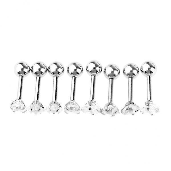 Description: Material: Stainless steel, Zircon Crystal; Gauge 16g (1.2mm), bar 6mm, zircon 4mm Bar 6mm, crystal 6mm, ball 1.2x4mm Highly polished finishing, smooth and shiny surface, comfortable to wear. Straight barbell nose ring stud is perfect as earrings, helix earrings, or tragus. Metal is high resistance to rust, corrosion and tarnishing, in case of skin infection. Package Includes: 8 Pieces Lip Ear Rings(3 Pack) Note: Since the size above is measured by hand, the size of the actual item you received could be slightly different from the size above. Meanwhile, please be reminded that due to lighting effects, monitor's brightness / contrast settings etc, there could be some slight differences in the color tone of the pictures and the actual item