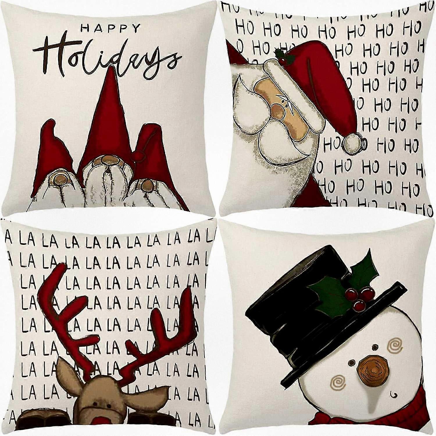 4 Festive Holiday Pillow Cases, Premium Linen Cushion Covers for Seasonal Decor