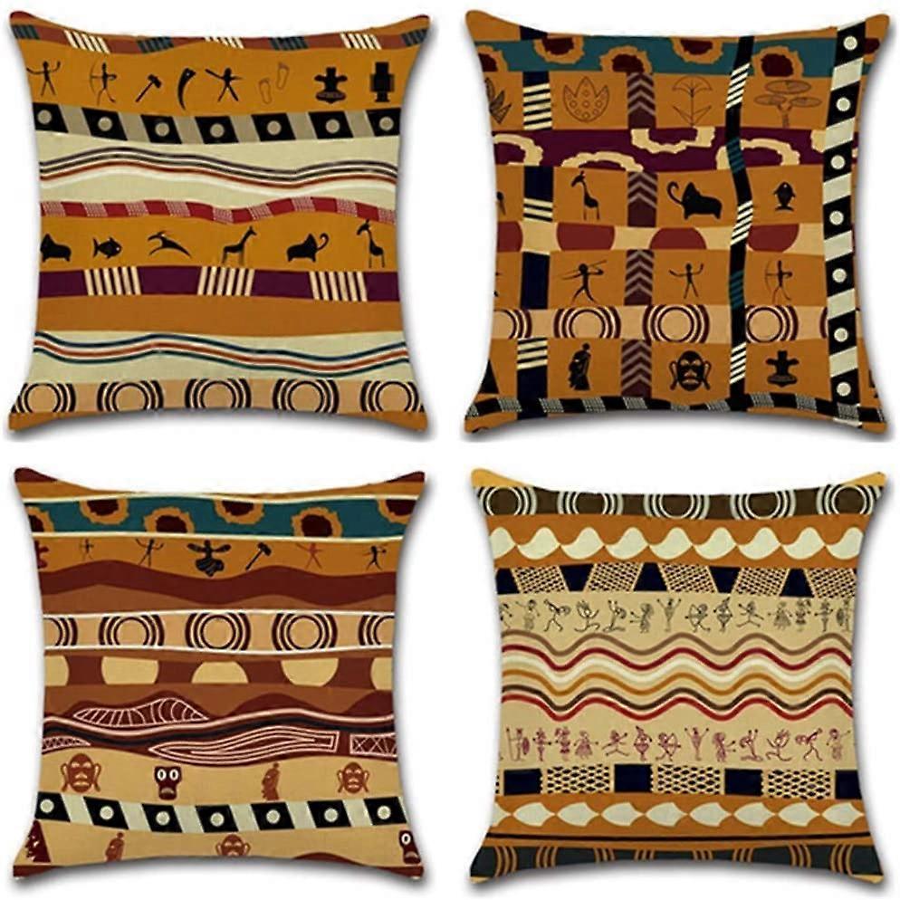 Set of 4 Arab Style Pattern Pillow Cover Cotton Pillowcases Sofa 18 by 18 Inches