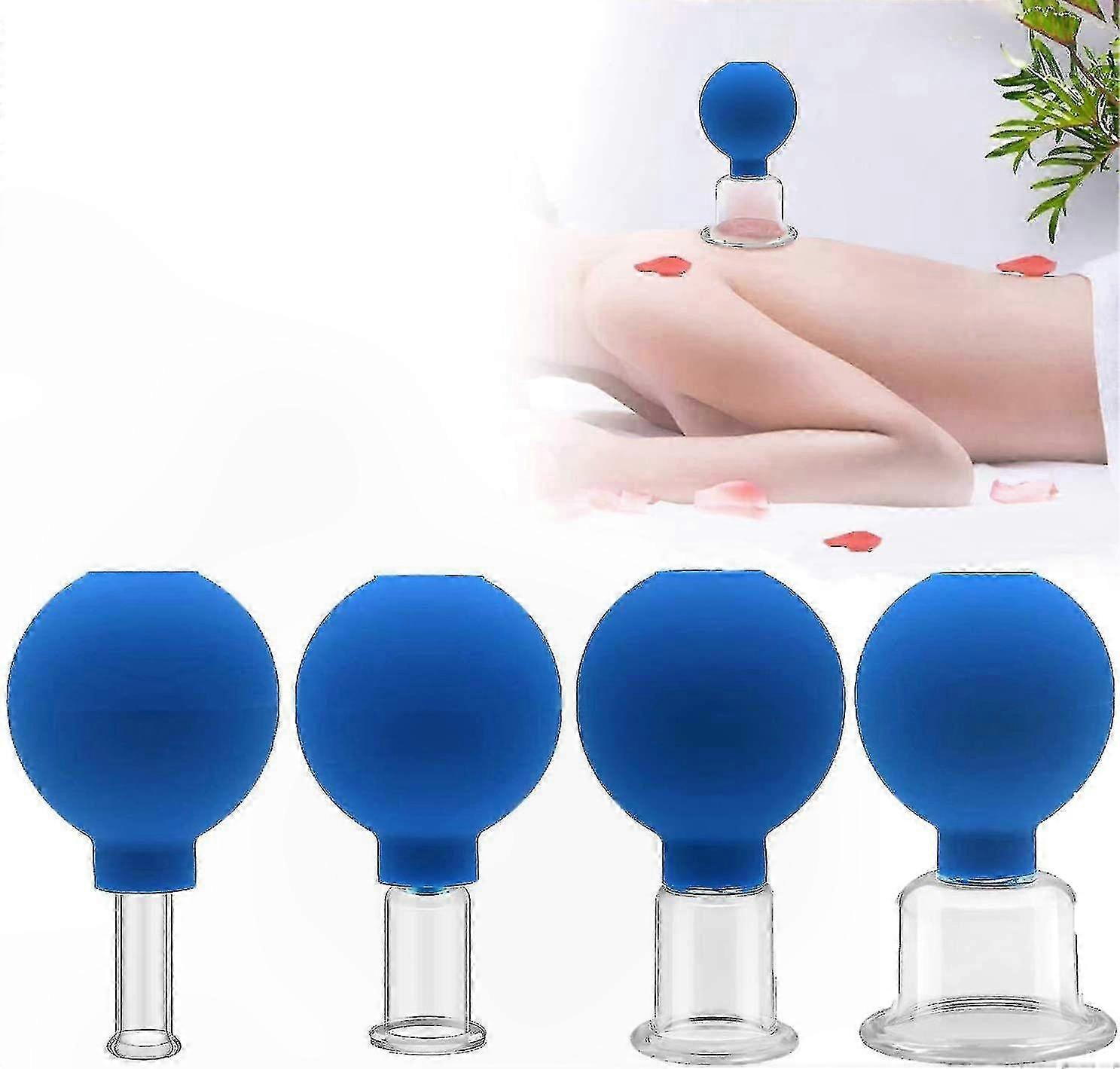 Cupping Set with 4 Glass Cups and Ball, Sizes 15-25-36-52mm for Professional Use