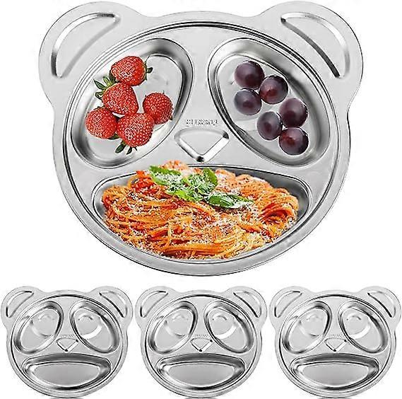 Set of 4 stainless steel divided plates, 3-section shatterproof plate, cute panda shaped divided plates, suitable for picky eaters, lunch, camping