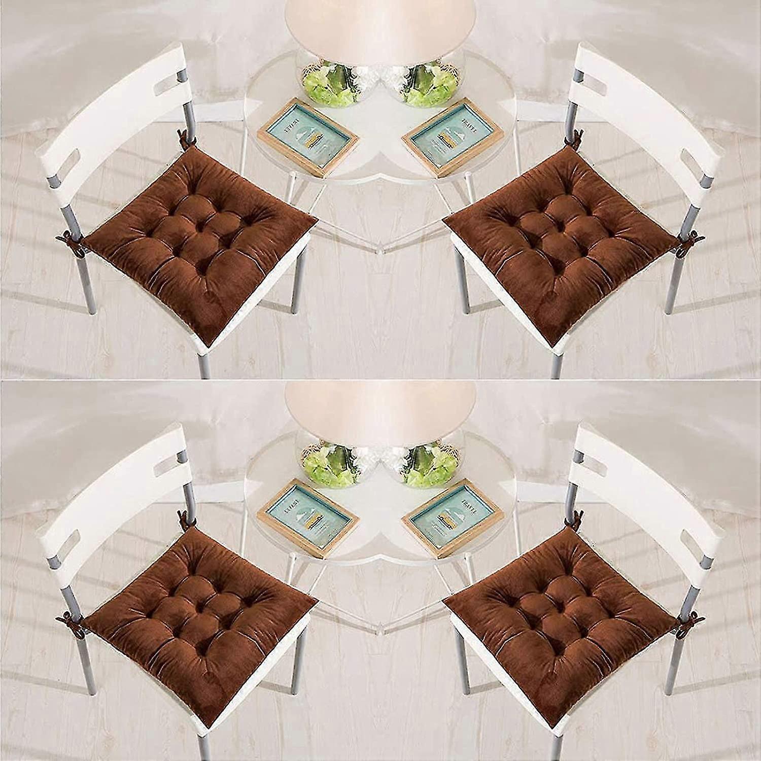 Set Of 4 Chair Pads 40 X 40 Cm Seat Cushions With Ties Soft Velvet Comfortable Square Cushions, For Dining Chairs Kitchen Living Room Patio Garden Ind