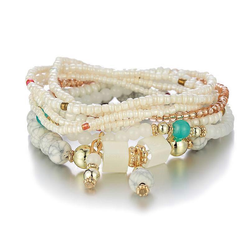 Set of 4 bohemian stretch beaded bracelets, women's turquoise beads, stackable bracelet set multi-coloured jewellery