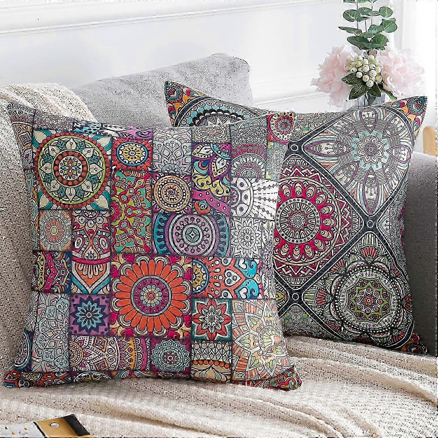 Set of 4 Modern Mandala Cushion Covers 45x45cm Bohemian Ethnic Throw Pillow Cases Cotton Linen Square Pillowcases Decorative Throw Pillow Covers