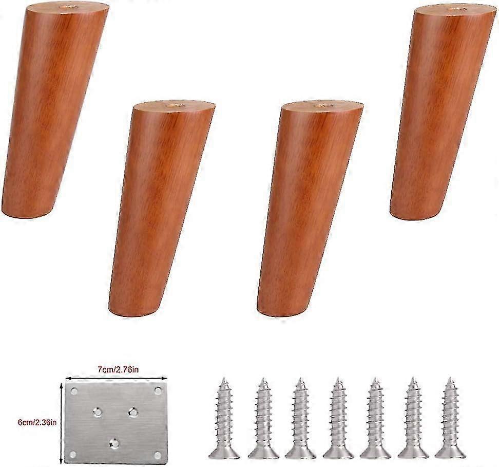 Set of 4 Round Solid Rubber Wood Furniture Legs - Slanted Cone Replacement Feet for Sofa, Kitchen Table, Bed & Wardrobe
