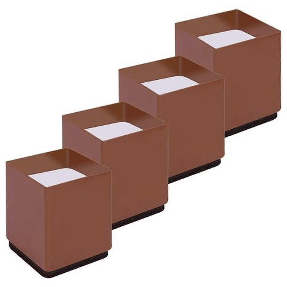 Sturdy Material: The bed risers are made of durable and unbreakable solid high-quality carbon steel, and the bottom is made of non-woven fabric. Glides for heavy furniture: bathroom cabinet, cabinet legs, sofa legs, table legs, desk legs.They are sturdy and durable, even the heaviest furniture in your home. Save Space: Adds extra height and storage space under beds and furniture, making it easier to clean under furniture.Particularly ideal for robot vacuum cleaners.Table risers extend the table legs to keep the foot stable and improve ergonomics, make your leg freedom more comfortable. Easy to Use: Self-adhesive bed riser, just peel off the back of the spacers and stick them to the furniture legs.Furniture feet with self-adhesive felt glides.Don't worry about the furniture slipping from the furniture riser. Product Size:Color changed to: brown;size changed to: side length 4 cm, interior height: 5 cm, exterior height: 7 cm.Set of 4 sturdy and space-saving bedding accessories.