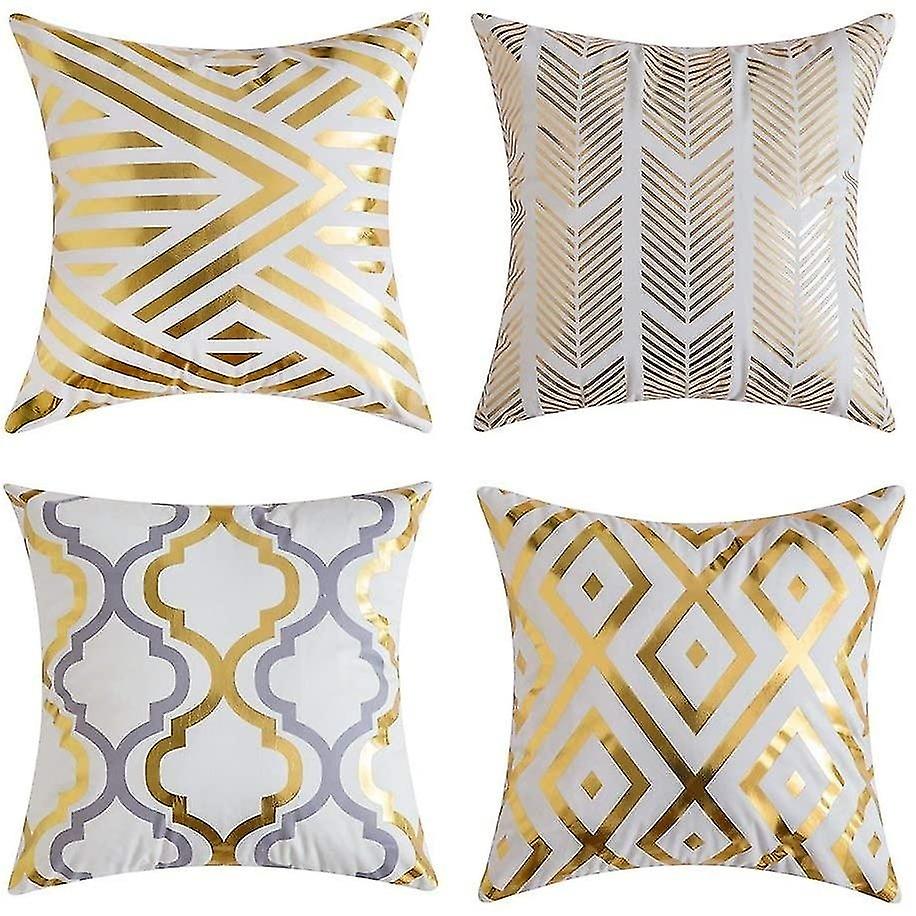 Pack Of 4, Gold Stripes Soft Soild Pillow Covers For Sofa Bedroom Car 45 X 45cm