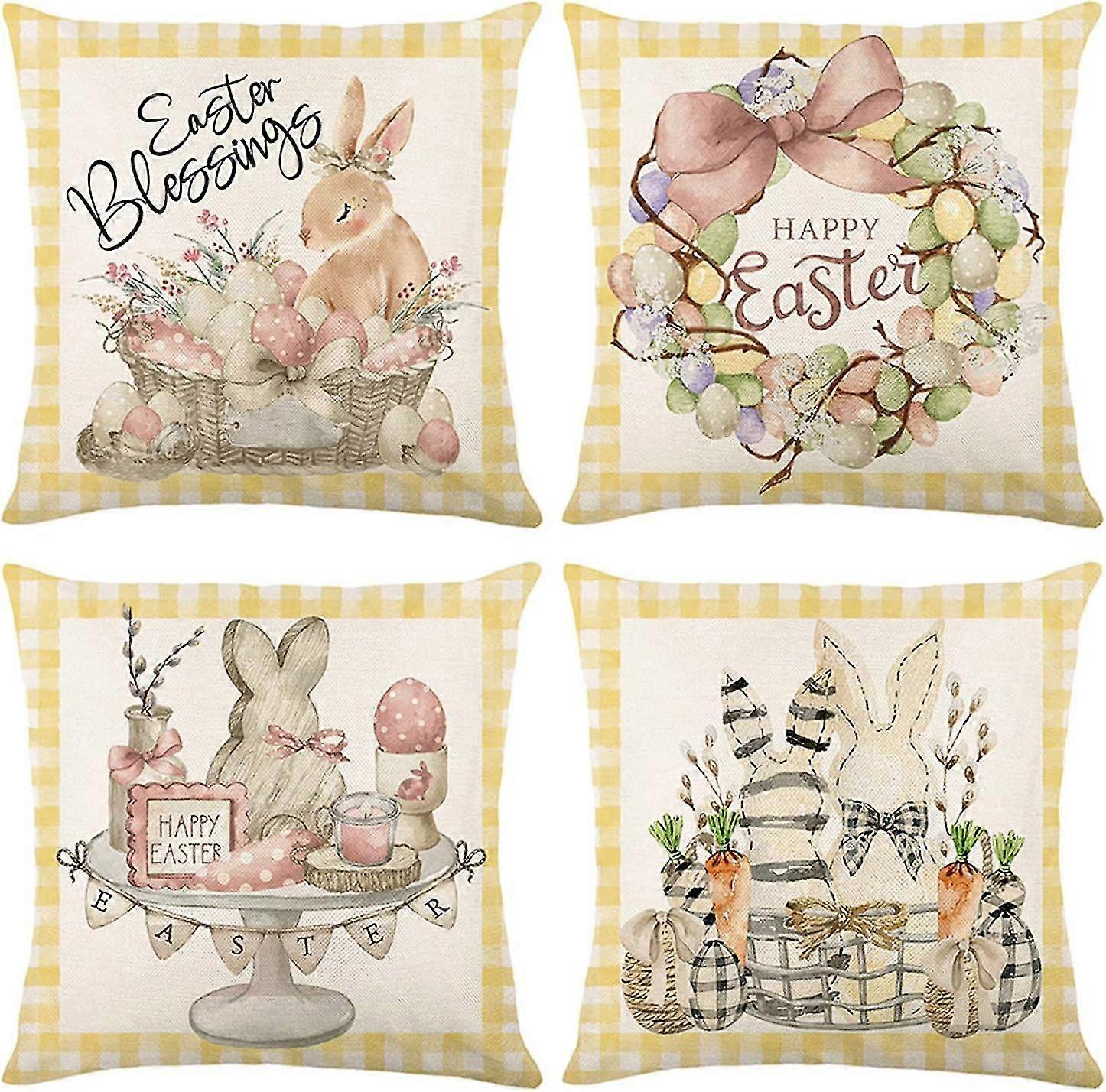 Pack Of 4 Easter Cushion Covers 45 X 45 Cm Spring Decoration Easter Decoration Linen Easter Bunny Cushion Cover Decorative Cushion Living Room Easter