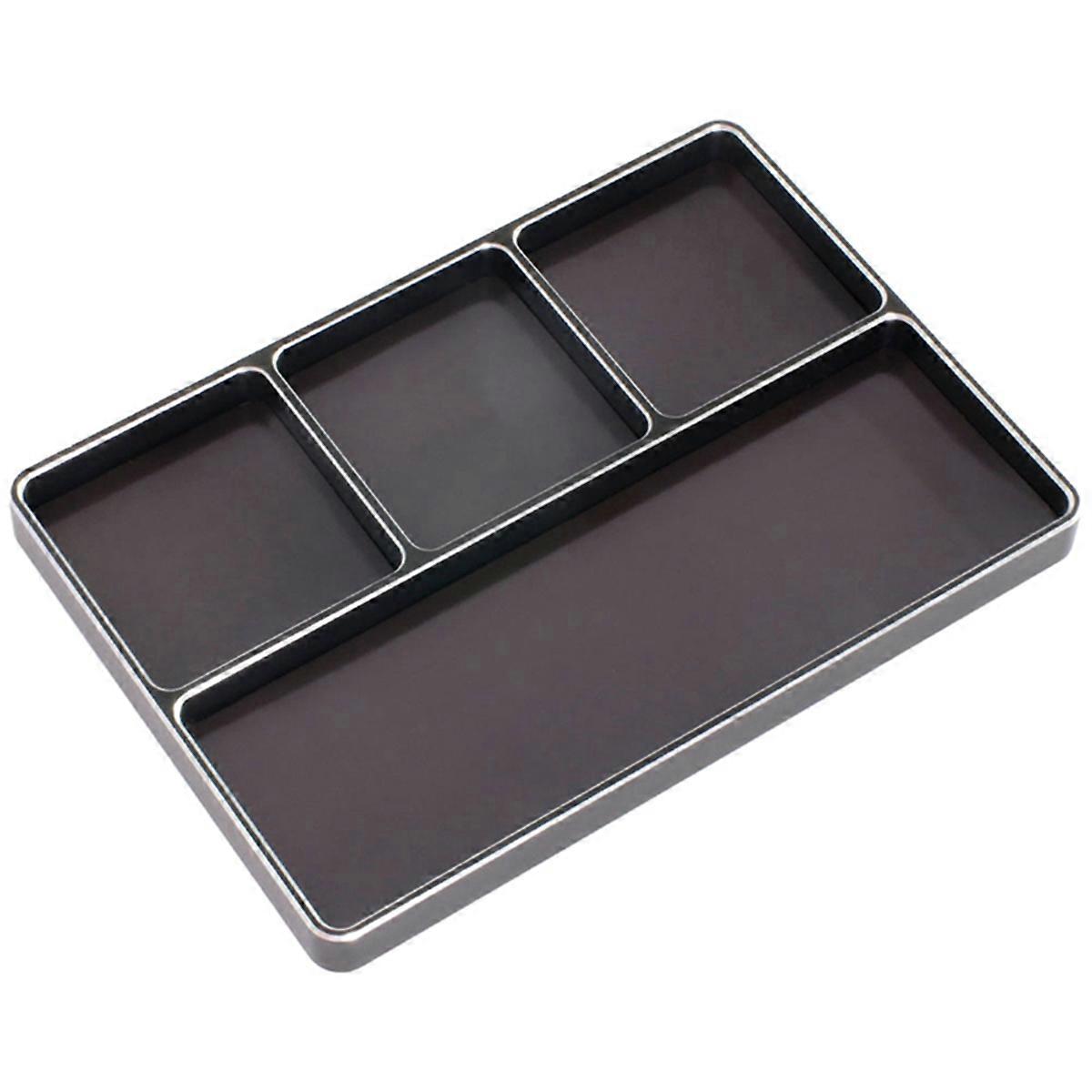 Four-Grid Simple Screw Disk Storage Box Metal Nut Screw Tray,Black