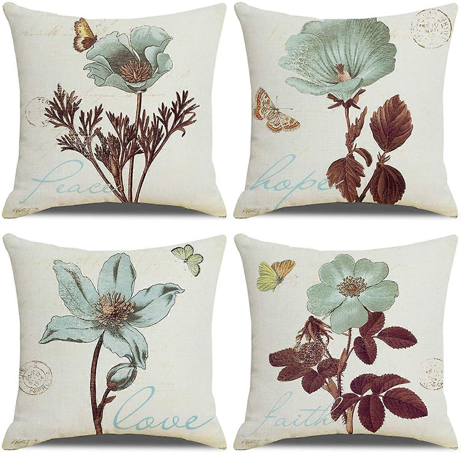 Pack of 4 Cushion Covers, Farmhouse Vintage Retro Flower Pattern 18x18 inches