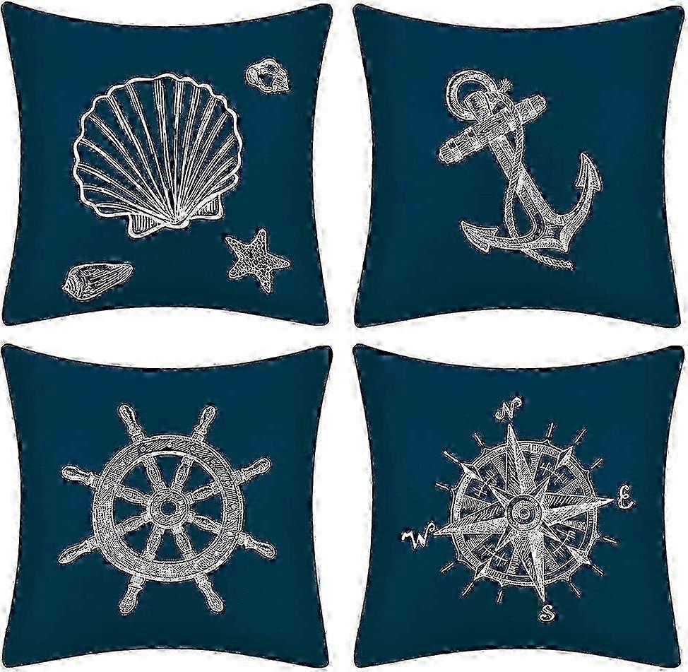 set of 4 compass navigation marine style decorative sofa cushion cover geometric pattern(45 x 45 cm)