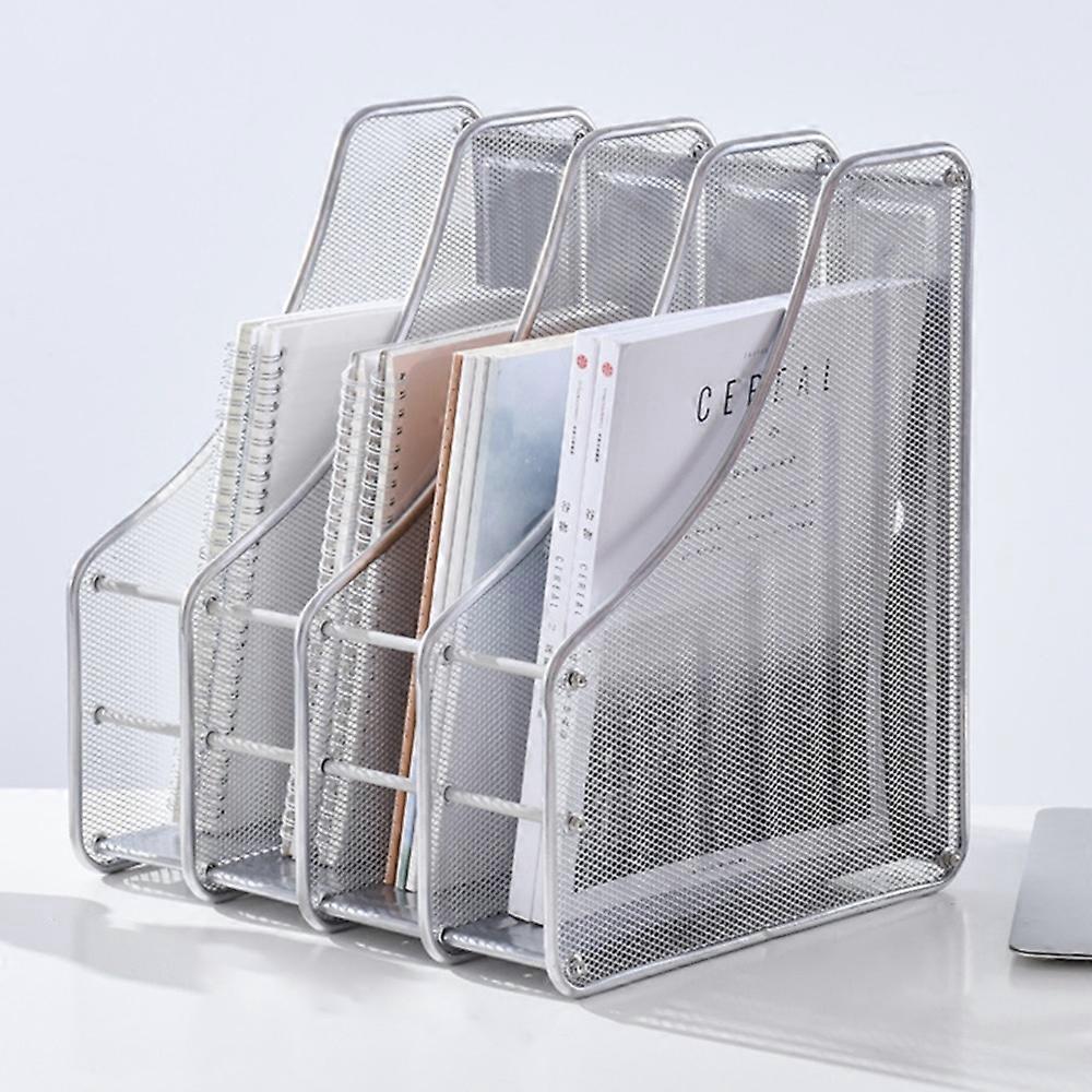 4 Compartments Desk Organizer Magazine Holder Metal Mesh File Sorter Document Rack for Offic Home -