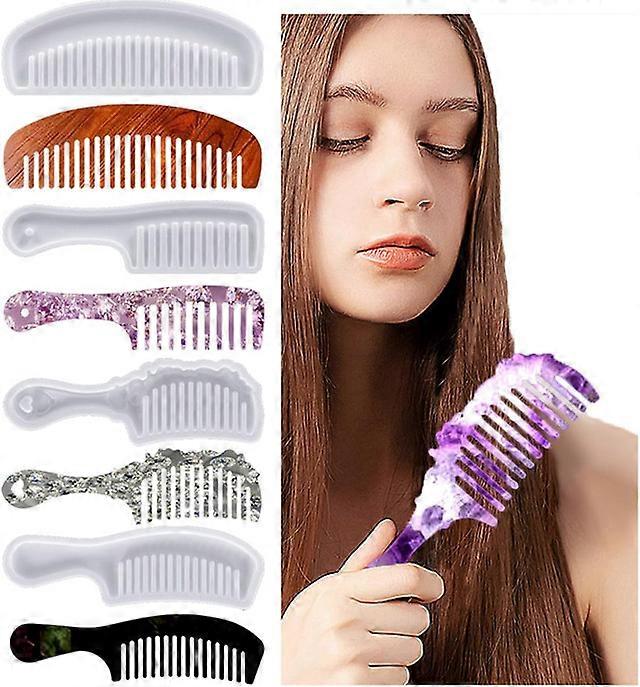 4 Styles Hair Comb Resin Molds Craft Tools Comb Resin Molds DIY Hair Styling Comb Tool Comb Silicone Mold with Handle Hairdressing Comb Mold