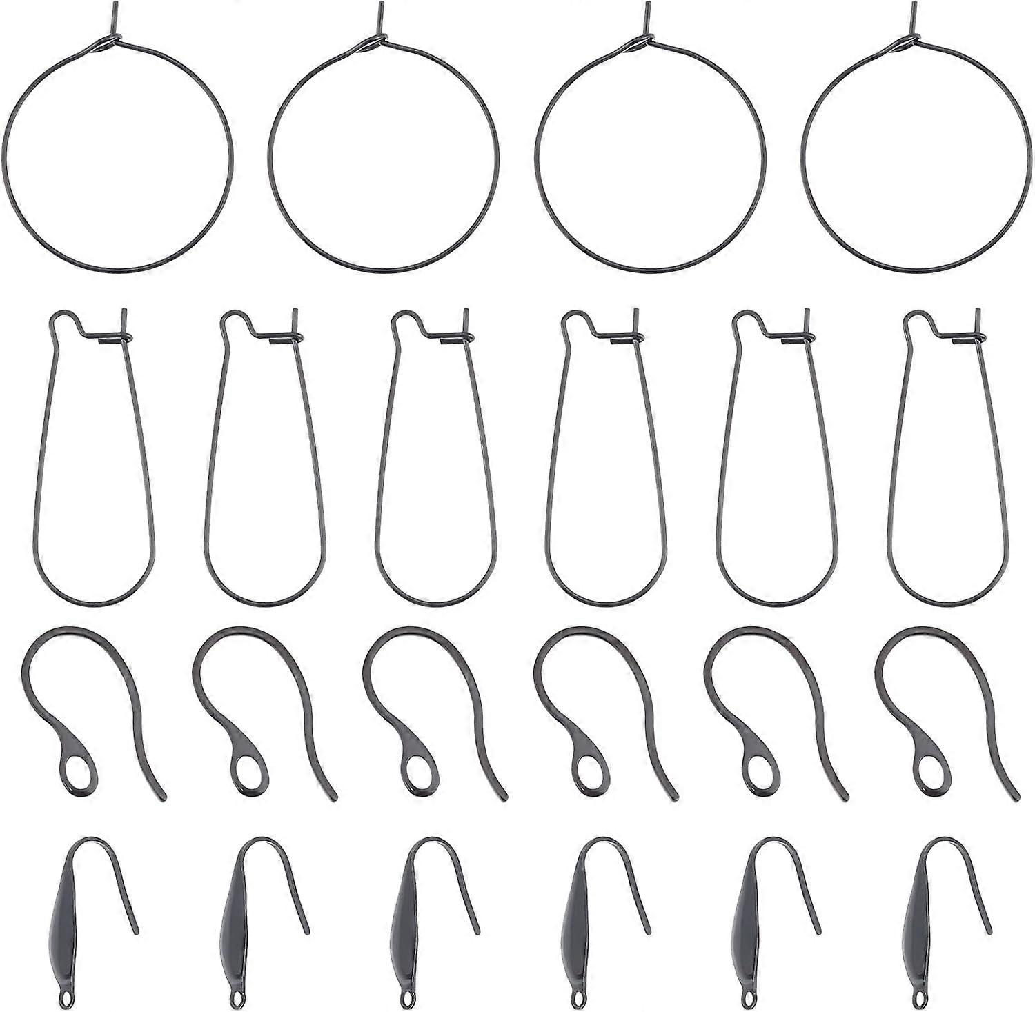 4 Styles DIY Earrings Making Finding Kit 304 Stainless Steel Hoop Earring and Earring Hooks Electrophoresis Black Hoop Earrings Metal Earring Componen
