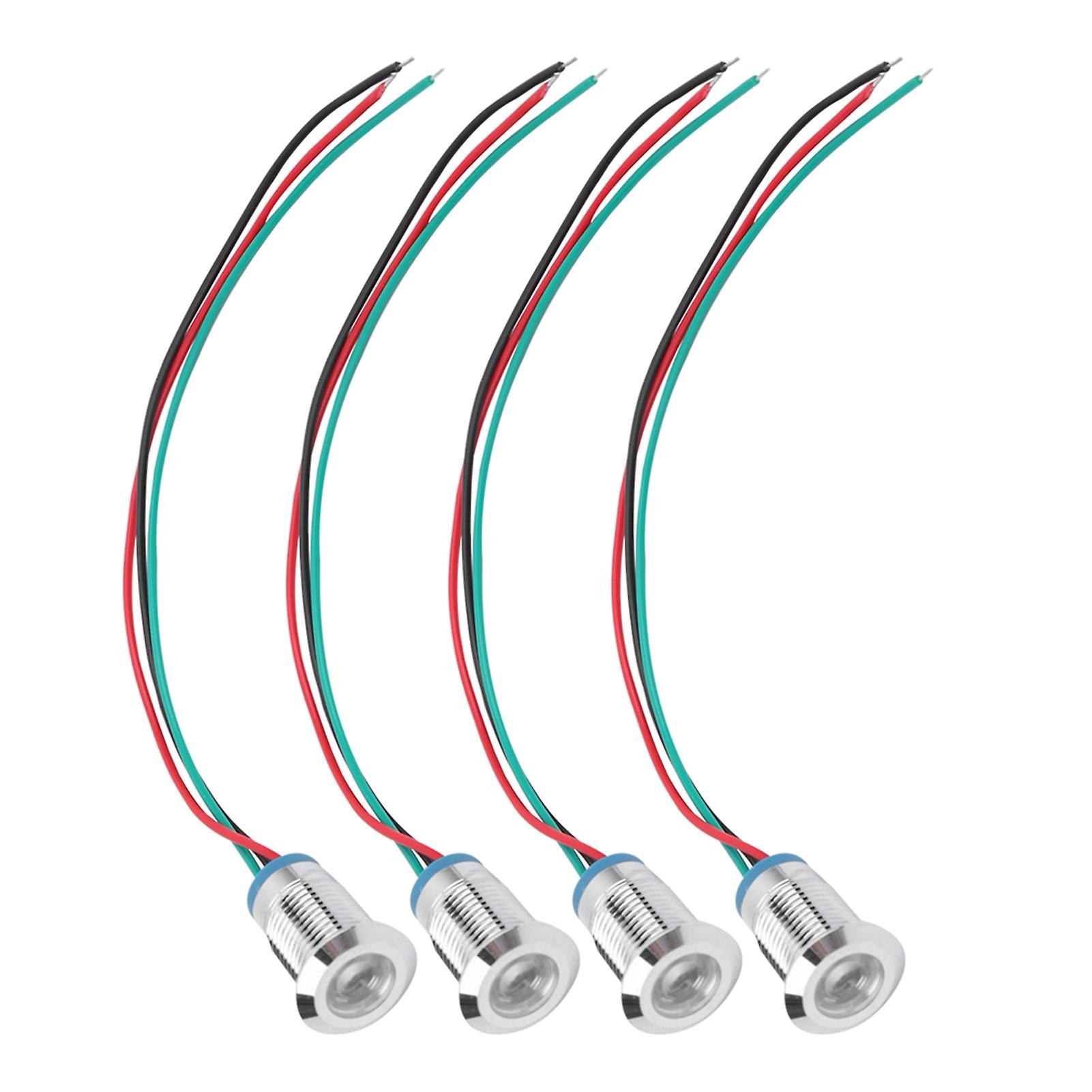 4 Sets PreWired 12mm Round LEDs 12-24V Waterproof Red Green