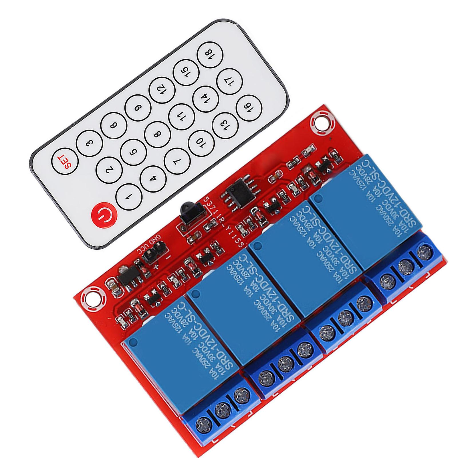 4 Channel Receiving Relay Module 4CH Infrared Remote Transceiver Receiver Control Switch Set 12V