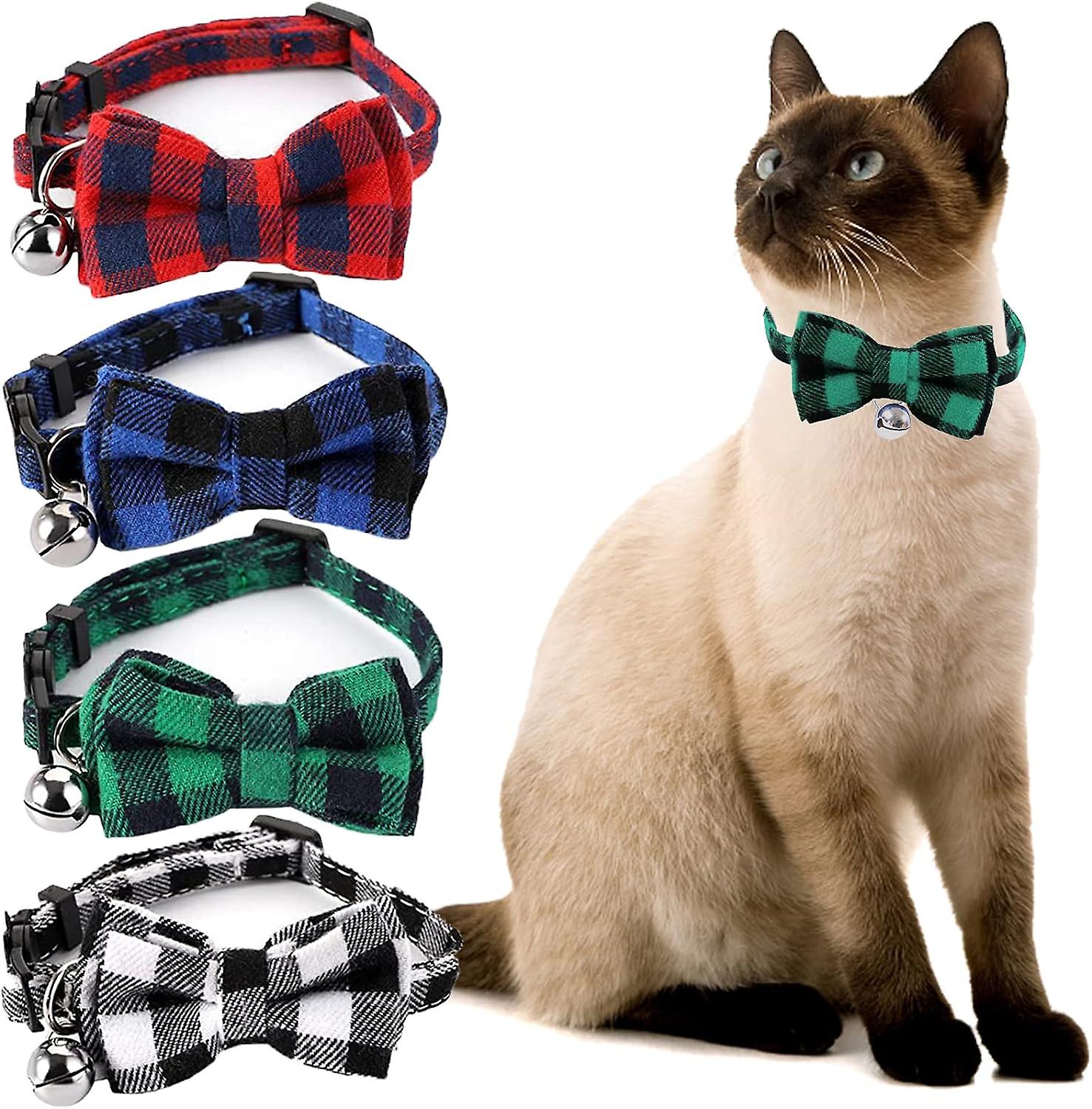 4-pack Cute Plaid Cat Collar With Bell And Bow Tie - Adjustable Tartan Pet Collars