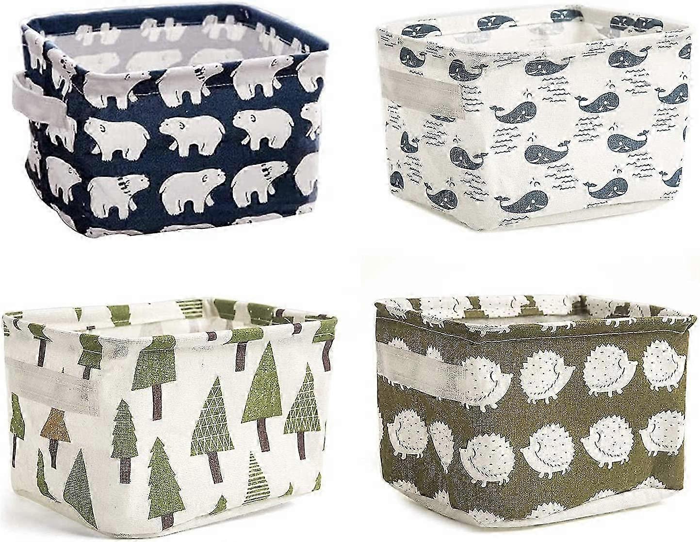 4 Pack Small Storage Baskets, Foldable Mini Square Storage Bins Made from Cotton Linen Fabric for Organizing Bathroom, Makeup, Books, Deskto