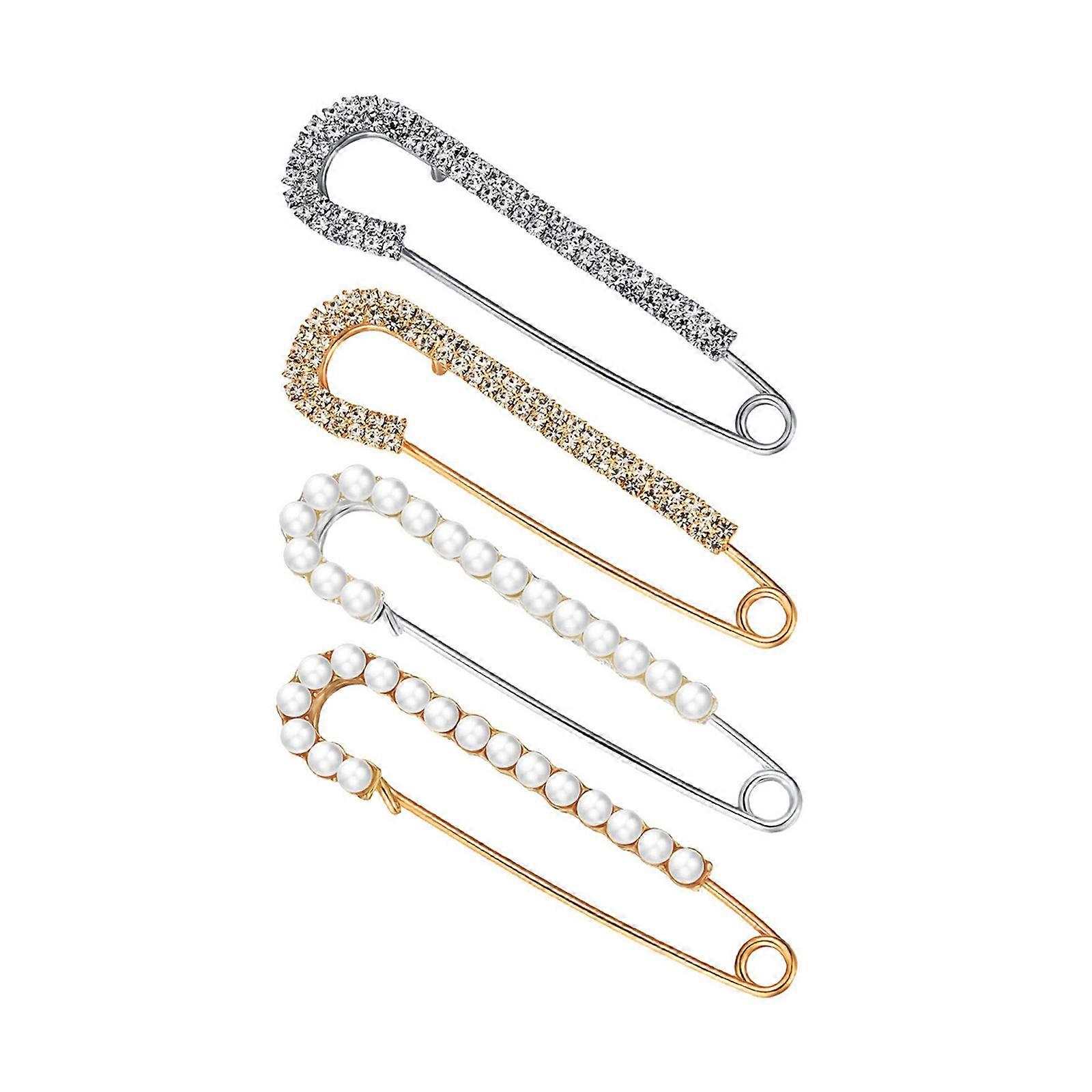 4pack Office Wear Brooches Versatile Decorative Pin Pearls Pattern Clip for Clothes and Accessories