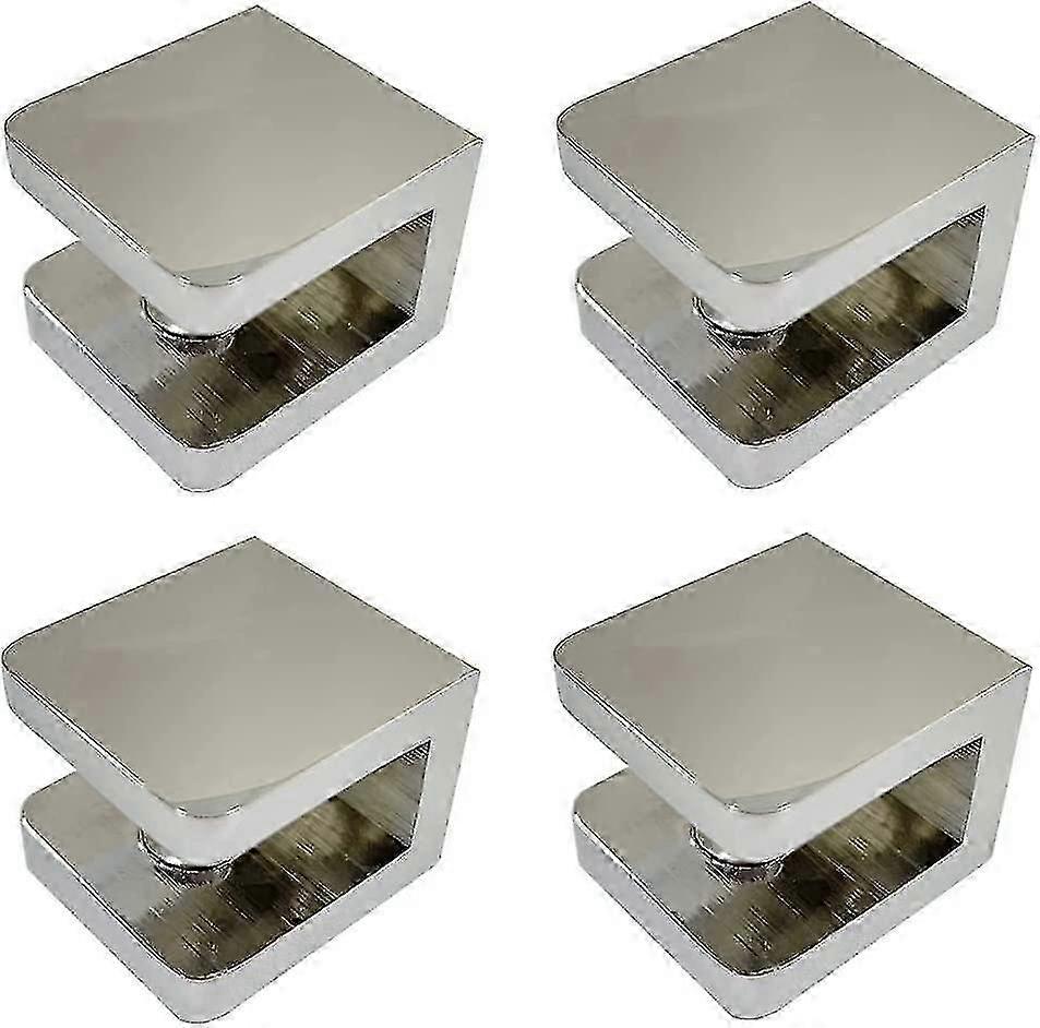 4-Pack Glass Clamp Shelf Bracket - No Drill for 8-10mm Glass (Chrome)