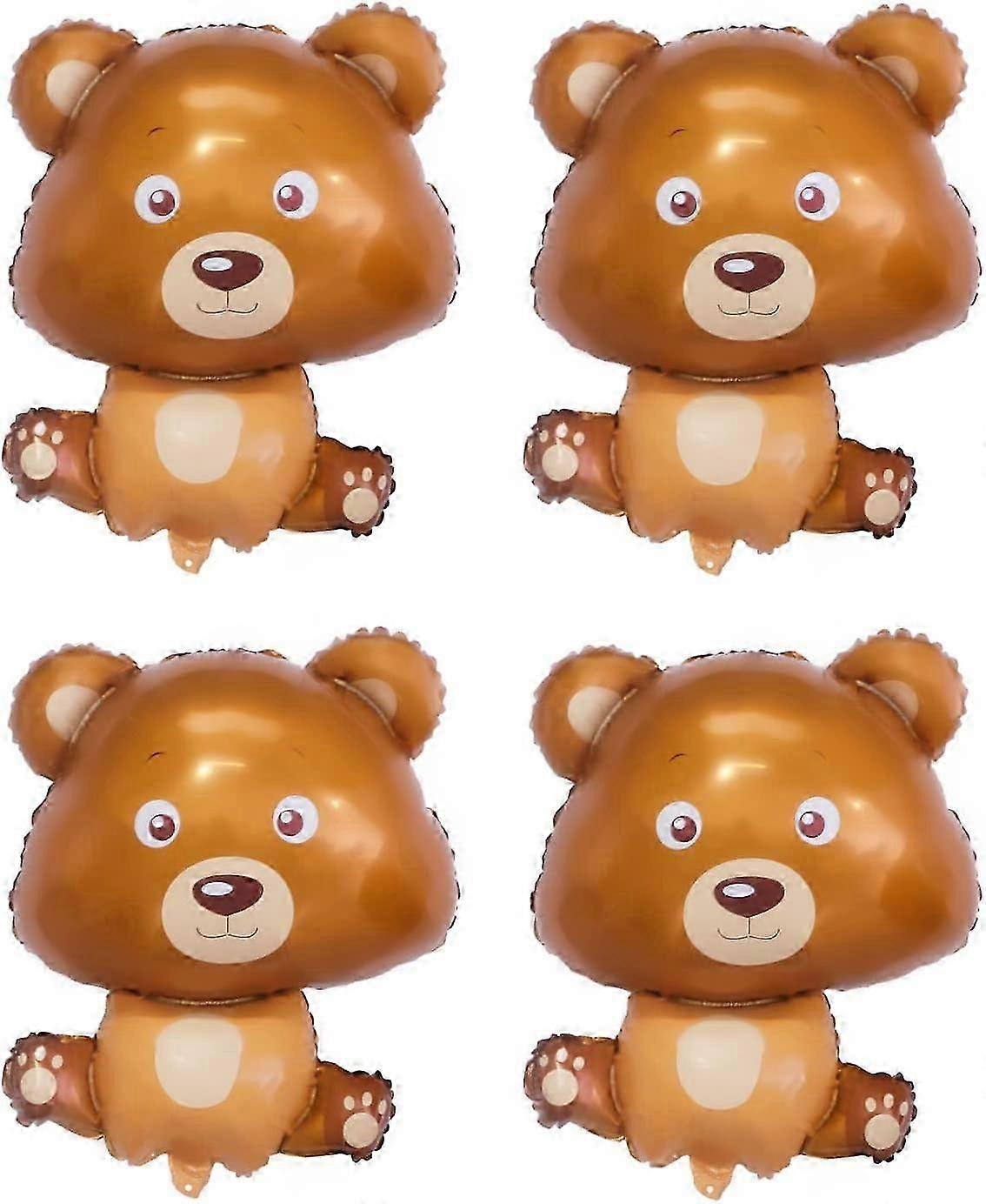 4Pack Bear Balloons, Teddy Bear Foil Balloon Decorations for Woodland Theme Baby Shower Children Birthday Party Decor Supplies