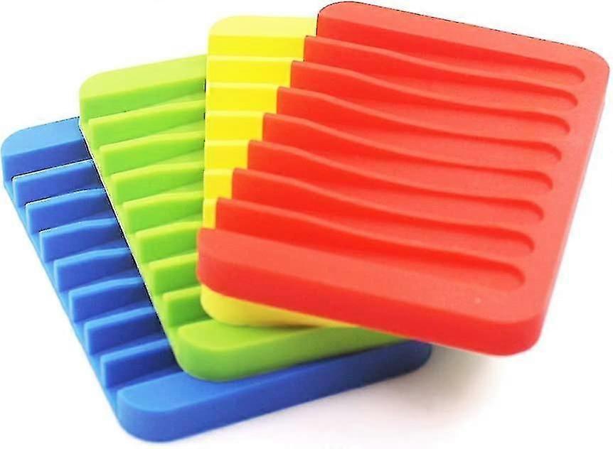 4 Pack Silicone Waterfall Soap Dish Saver Holder, Colorful Soap Tray Drainer For Bathroom