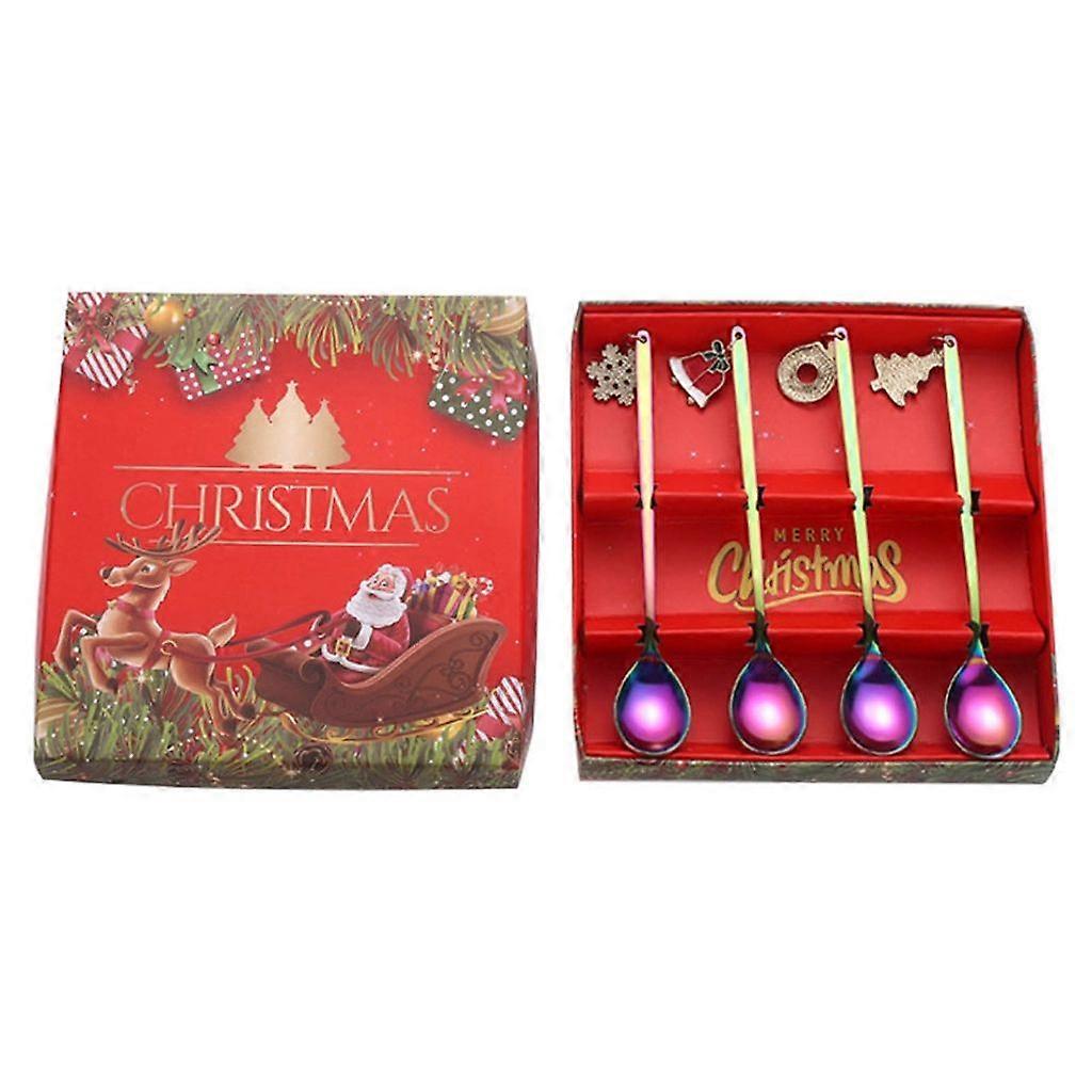 4 Pack Stainless Steel Tableware Coffee Spoon Christmas Themed Dessert Spoons