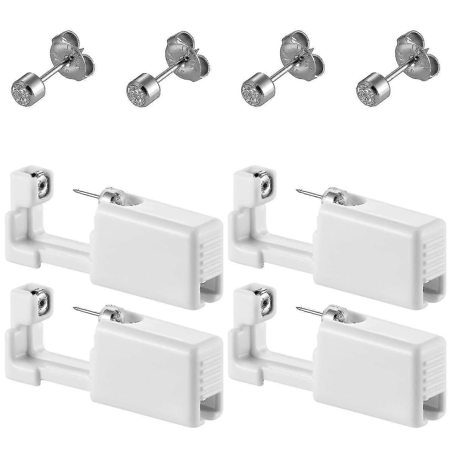 4 Pack Self Ear Piercing Gun, Disposable Self Ear Piercing Gun Kit With Earring Studs Safety Ear Piercing Gun Kit Toolmini White Diamond