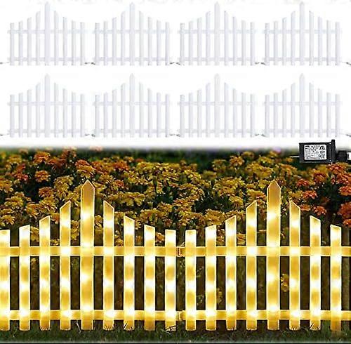 4-Pack Solar Garden Fence Lights - Remote Control 144 LED White Picket Fence Border, 28cmx140cm 11.1inx4.6ft