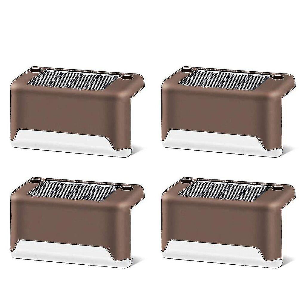 Description:Intelligent light control mode, automatic charging during the day, automatic lighting at night.Open switch, no electricity bill, no wiring, easy to use.Durable solar panels, high photoelectric conversion rate, long service life.High transmittance lamp shade, high strength, not easy to age.Suitable for pathway / staircase / step / garden / yard / wall / drive way / etc. Specification:Name: Solar Deck LightMaterial: ABS + solar panelSolar panel: PolysiliconBattery: 1.2V 200MahCharging method: solar chargingLight color: RGB lightProduct color: BrownCharging time: 6-8hours (depending on the intensity of different seasons).Size: About 7.5x4.4x4.2 cm (L*H*W) Package included:4 pcs X Solar Deck Light Please Notes:1. Please fully charge the device under sunlight before first use. Make sure the button is in the ONposition before charge it on the sun.If the button in the onposition, keeping the solar panel in the darkness,then the lights will light up.2. If there is no enough sunlight in 3 months, the battery may run completely flat, and will decrease battery life, so please charge in time. Once it's fully charged, unlock the device and lighting system. Otherwise, it won't work anymore.3. If there is no enough sunlight, especial in North countries. it may take longer time to fully charge the device.This is very normal for solar products.4. Due to the light and screen difference, the item's color may be slightly different from the pictures.5. Please allow 1-3cm differences due to manual measuremen
