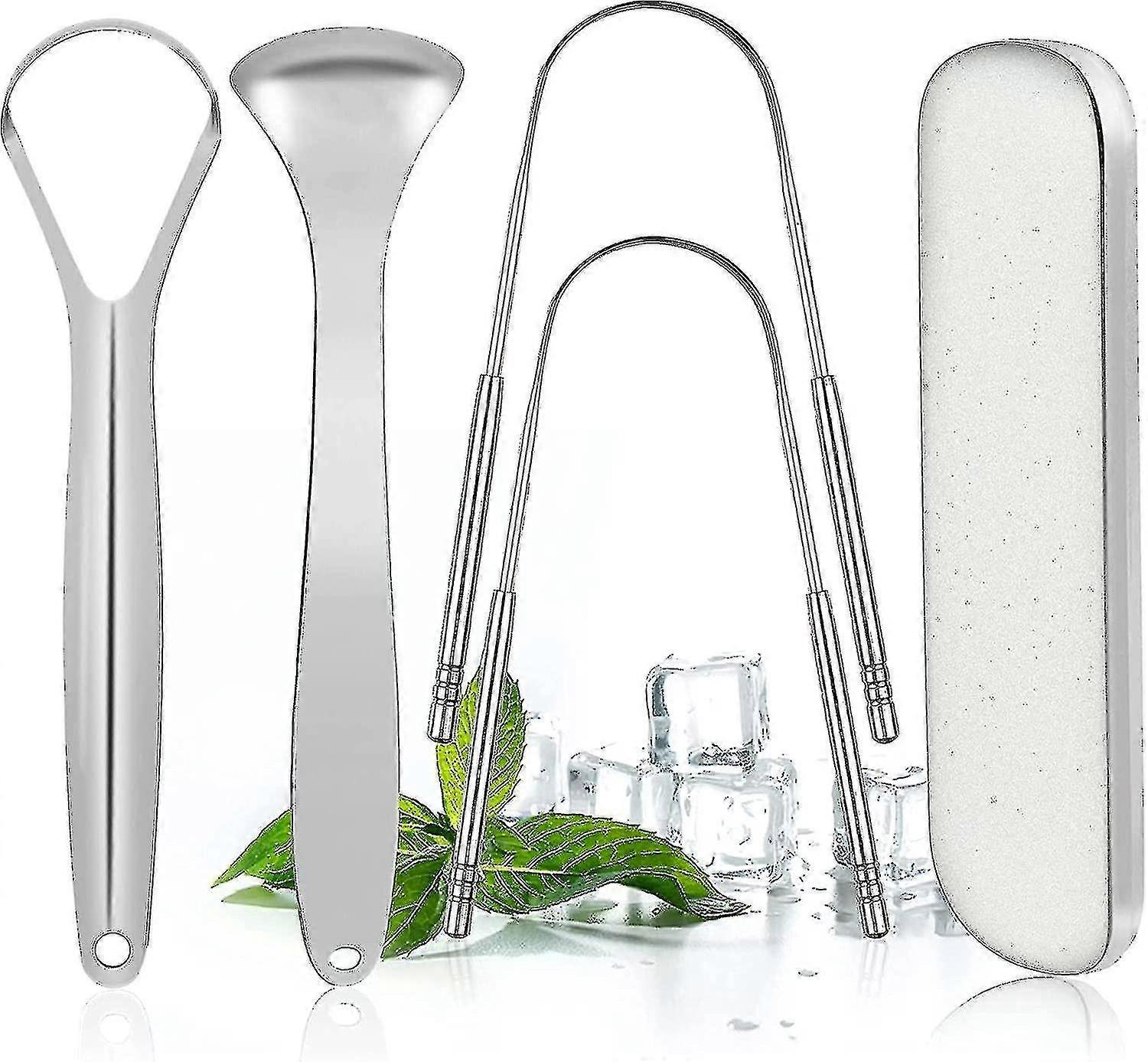 4-pack Tongue Scraper, Tongue Brush, Tongue Cleaner, Stainless Steel Tongue