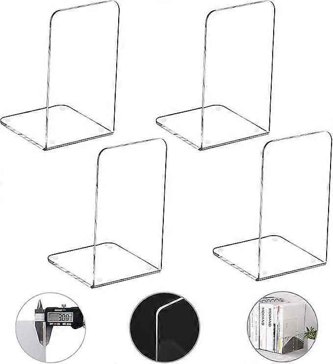 4-Pack Plastic and Acrylic Bookends Pair Organizer Bookshelf Decorative Bedroom Library Office School
