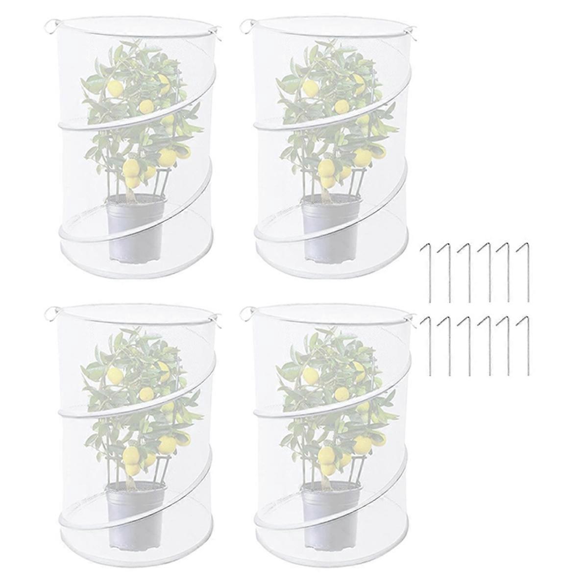 4 Pack Popup Plant Covers Tent From Animals, Insect Barrier Mesh Plant Guard Cover Net Garden Plant Protectors White