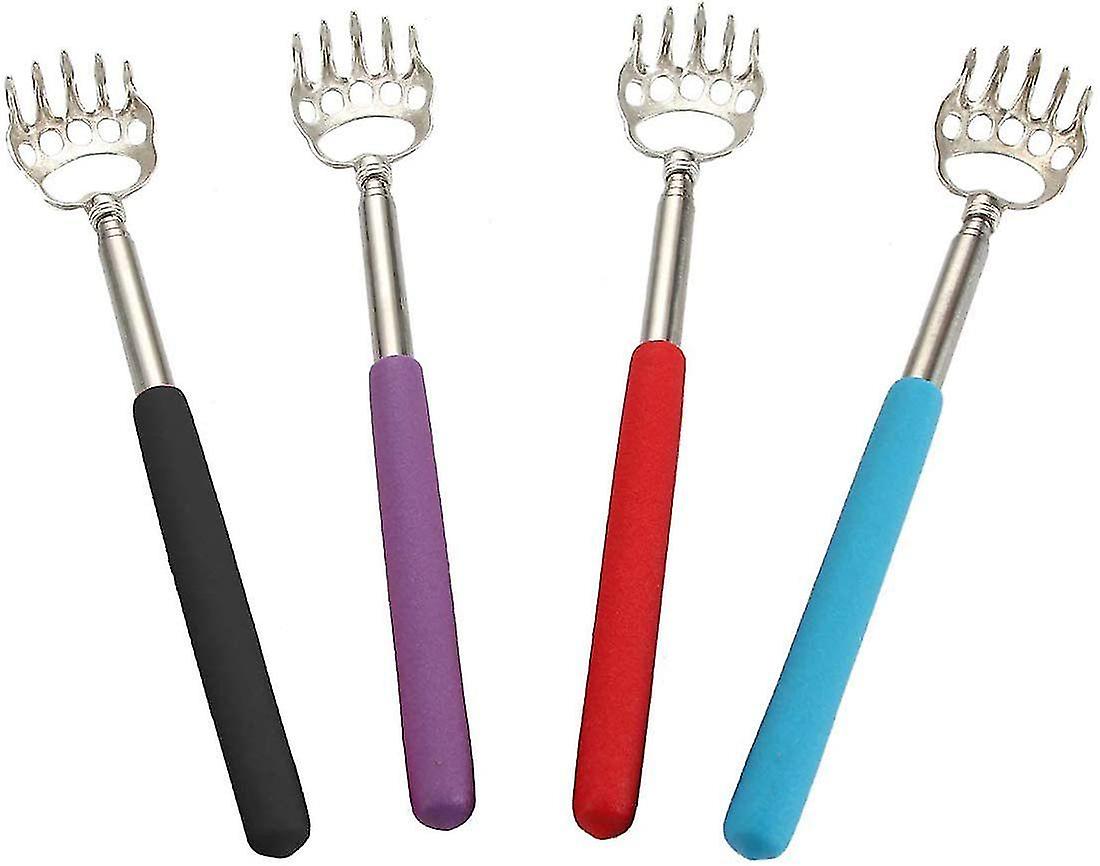 (4-pack) Portable Extendable Telescopic Bear Claws Metal Back Scratchers/hand Massager/backslap With Rubber Handles