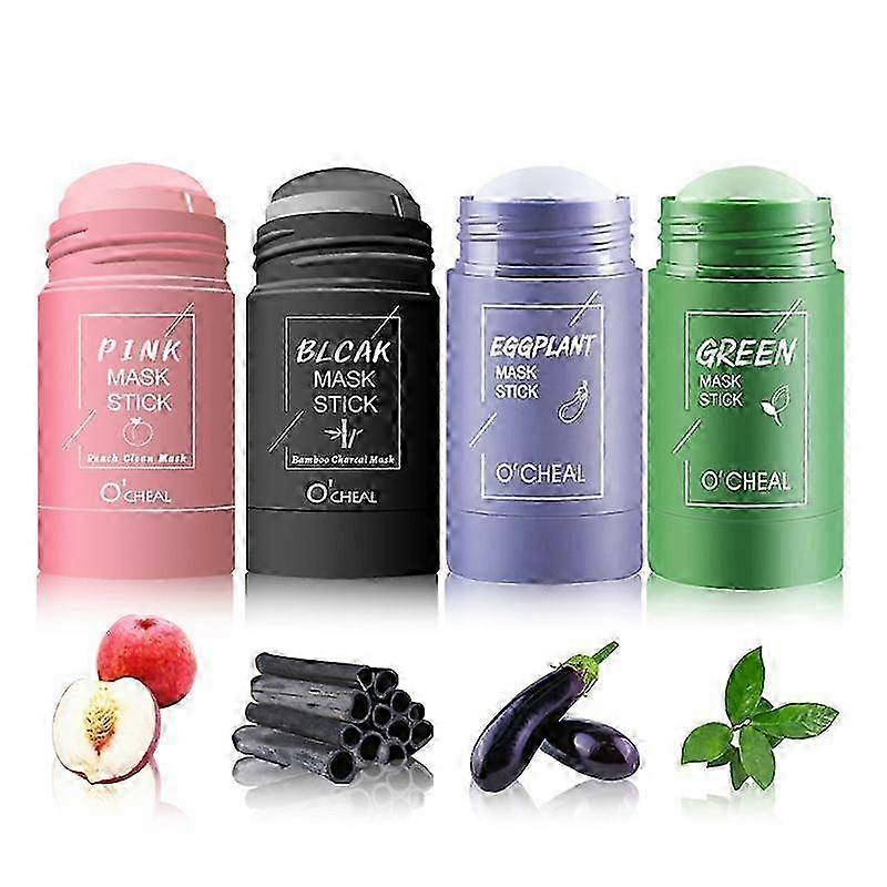 4 Pack Mask Sticks Set, Green Tea Mask Sticks, Bamboo Charcoal Clay Mask, Aubergine and Peach Mud Mask, Facial Skin Clay Mask Set for All Skin Types