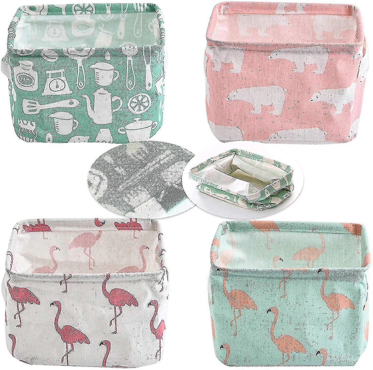 4 Pack Storage Baskets, Small Fabric Storage Basket With Handles For D