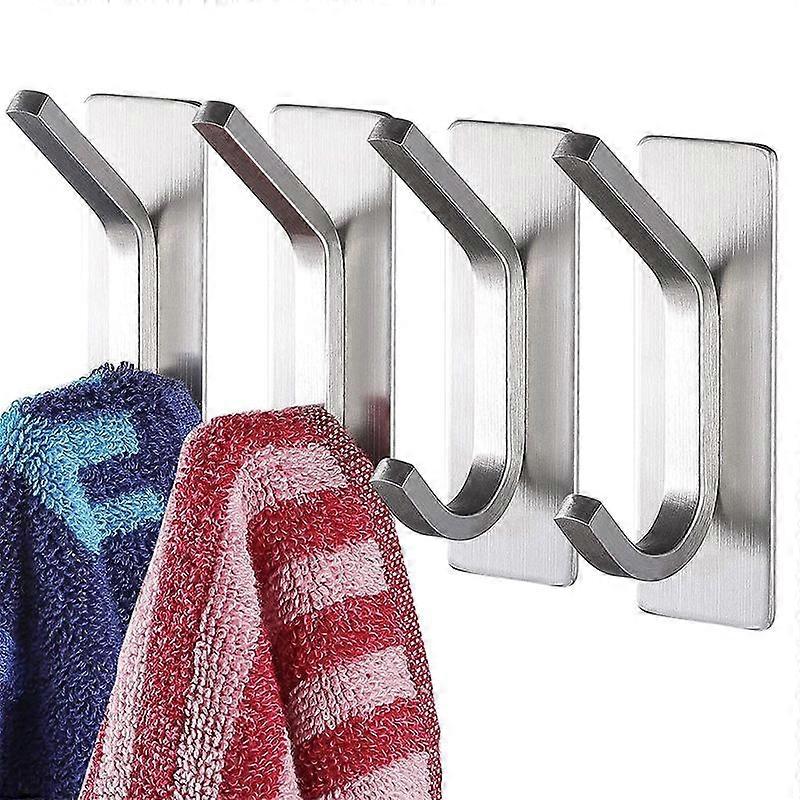 4-Pack Wall-Mounted Towel Hooks - Stainless Steel