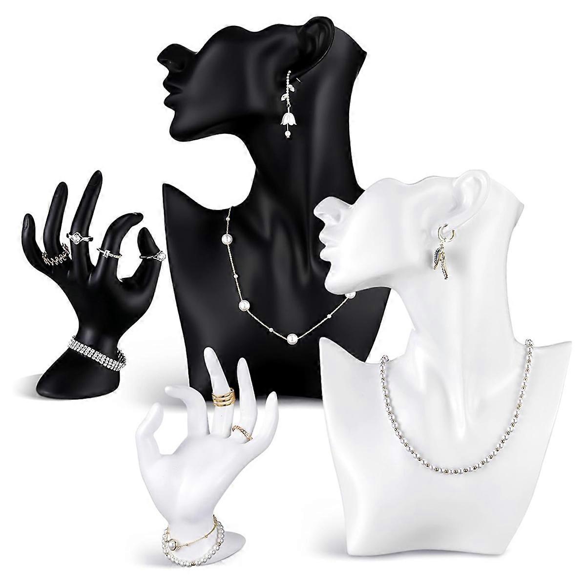 4 Pack Resin Jewelry Mannequin Display Set Necklace Earring Display Stand and Female Mannequin Hand Ring Bracelet Holder