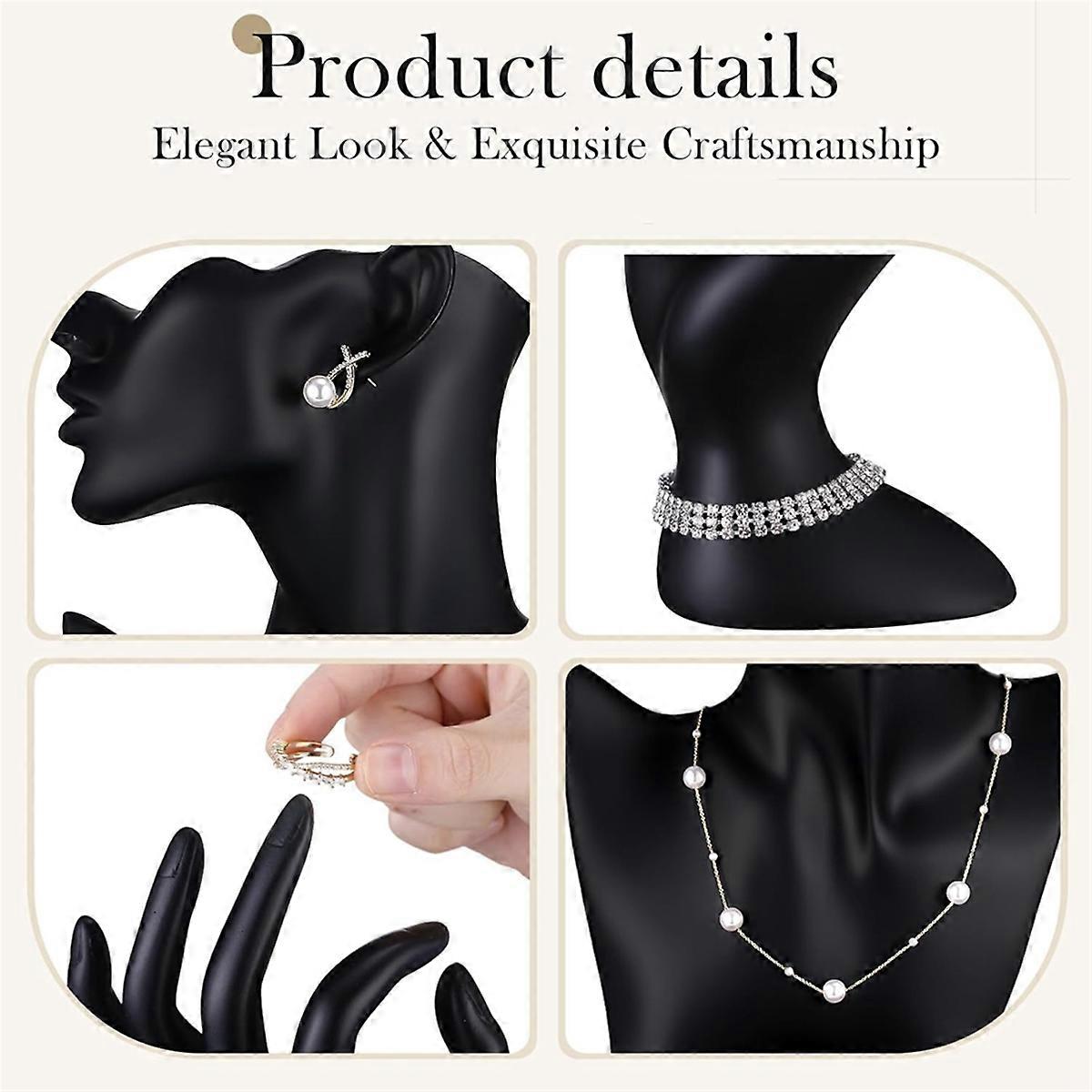 4 Pack Resin Jewelry Mannequin Display Set Necklace Earring Display Stand and Female Mannequin Hand