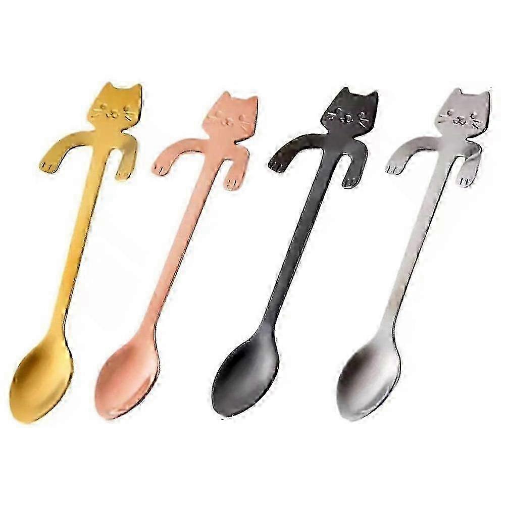 4 Pack Cat Coffee Teaspoon, Mini Kitten Spoon 4 Colors Stainless Steel Small Spoon