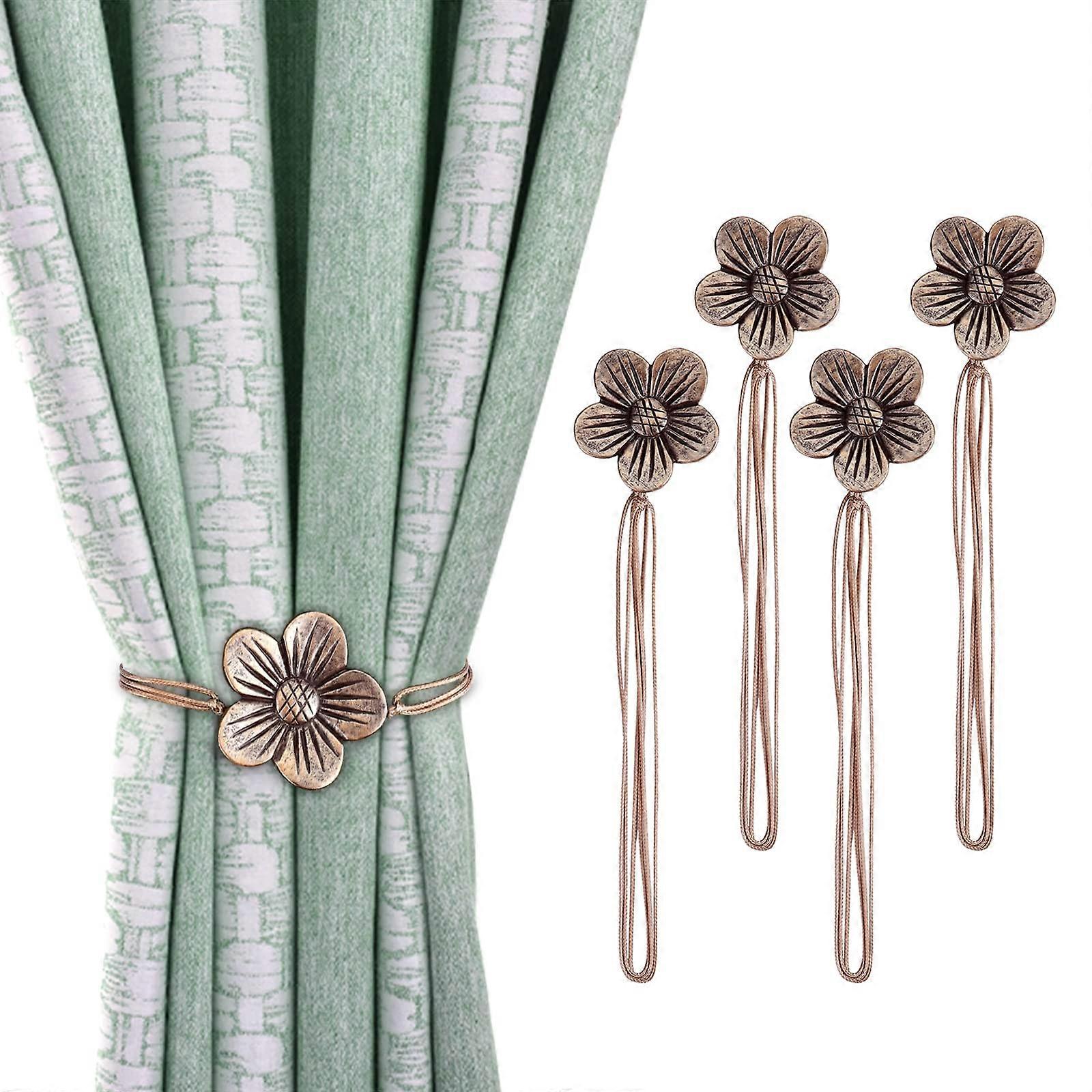 4 Pack Magnetic Curtain Tieback, Vintage Flower Curtain Drapery Holdback Window Curtain Decorative Buckle Holder